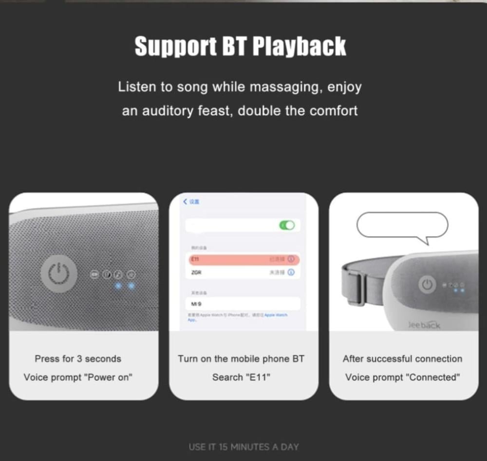 1. ضع جهاز مساج العين برفق على العينين مع ضبط الحزام ليتناسب مع مقاس رأسك.